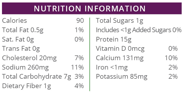 ~90 Calories ~15g of Protein